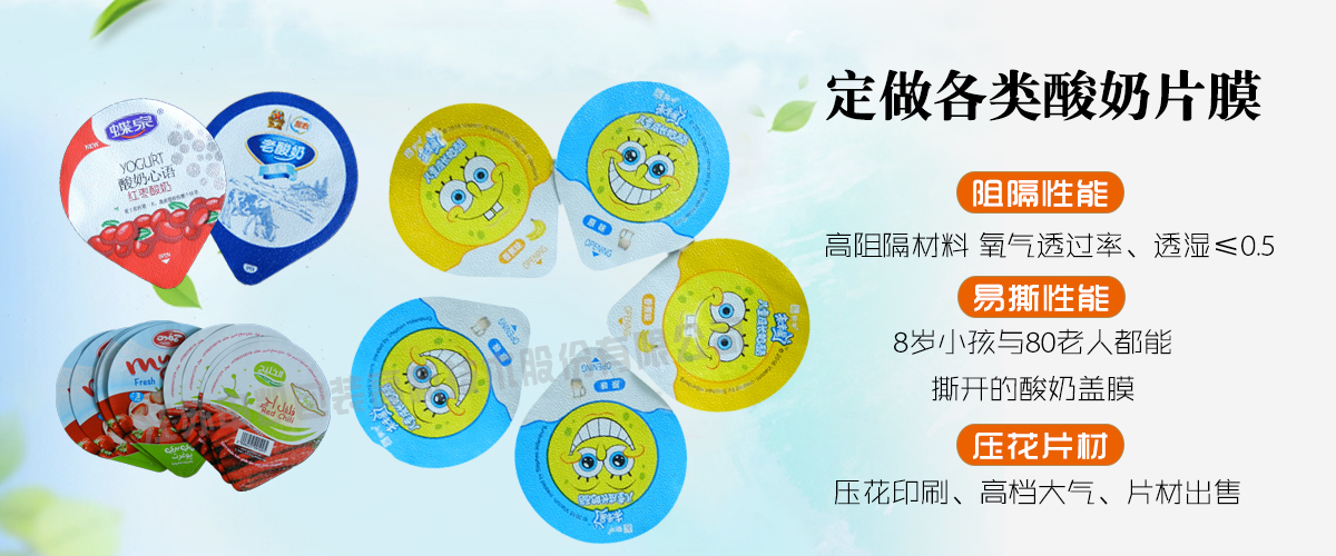 在包裝工業發展的基礎上,物品的包裝也得到相應的發展。從簡單紙包裝,到單層塑料薄膜包裝,發展到復合材料的廣泛使用。包裝蓋膜能使包裝內含物具有保濕、保香、美觀、保鮮、避光、防滲透、延長貨架期等特點,因而得到迅猛發展。蓋膜就是一種為了便利人們使用產品的復合膜包裝制品,所謂易揭蓋膜簡而言之就是在一個相對厚度、硬度比較大的碗狀容器上的一層質地比較軟、容易揭開的蓋子。